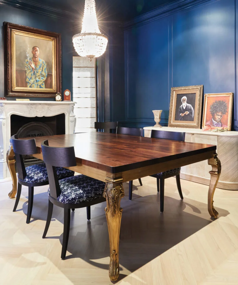 Gordon Shadrach has had a lifelong fascination with the semiotics of clothing and its impact on culture. In particular, his interest lies in the intersection and codification of race and fashion. These codes impact the way we navigate through spaces and influence how people associate with one another. Shadrach’s portraits of Black men utilize fashion—contemporary or historical dress—in order to create narratives which pull viewers in to explore the biases embedded in North American culture. In creating backgrounds, Shadrach’s selective palette demonstrates that dark colours elevate the presence of his sitters rather than diminish them. Some of Shadrach’s paintings are finished in damaged antique and vintage frames. The frames’ patina and wear lend historic weight and insert the portraits into a period when Black people were rarely depicted in Western portraiture. Shadrach seeks to disrupt the colonial constrictions of portraiture by inviting viewers to reflect upon the depiction of Black people in art and culture.